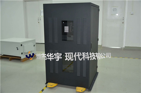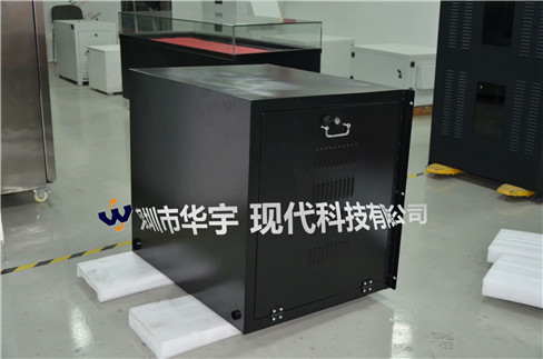 我公司为浙江某公司定做了两台不同型号的投影机室外恒温恒湿安装柜,表面为黑色钣金喷涂(防雨水侵蚀),其中一台为型号HYXD-1150KWS,双层1150L,内上下层共可放置两台投影仪,投影安装上下左右角度线性调节,最大可调角度为±15度。另一台玻璃面朝下,为向下俯视投射。两台柜子于冬至前天出货发往浙江,图片如下: